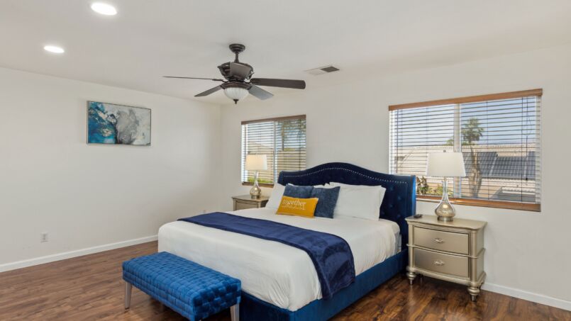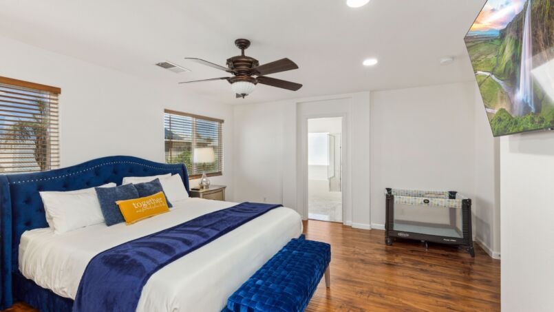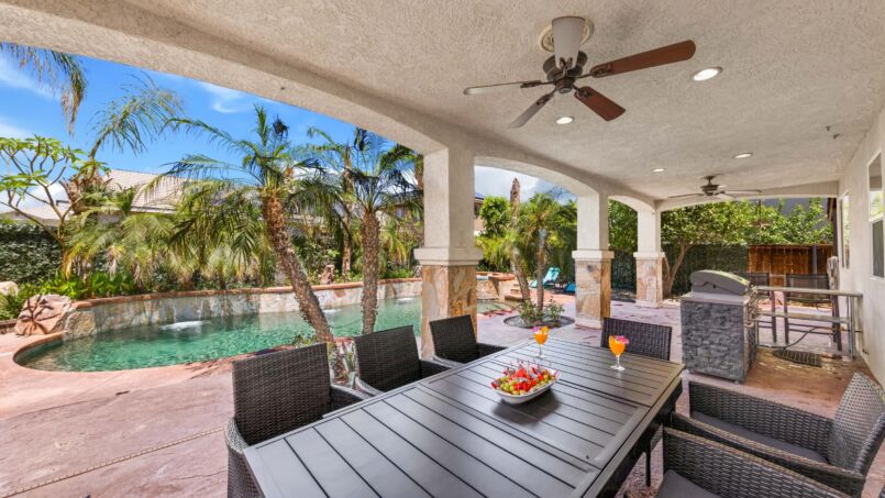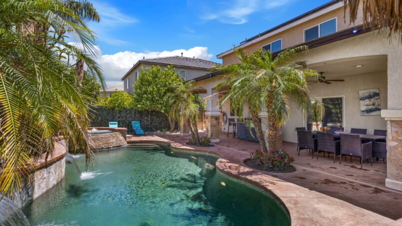 Step outside to the backyard oasis, where you’ll find a large pool and hot tub, perfect for taking a refreshing dip or soaking up the California sun. The outdoor grill area is ideal for cooking up a delicious BBQ meal, while the spacious patio provides plenty of room for lounging and outdoor dining. Located just minutes from world-class golf courses, shopping, and dining, our vacation home offers the perfect blend of relaxation and adventure. Book now to experience the ultimate in luxury and comfort at our beautiful vacation home in Coachella!